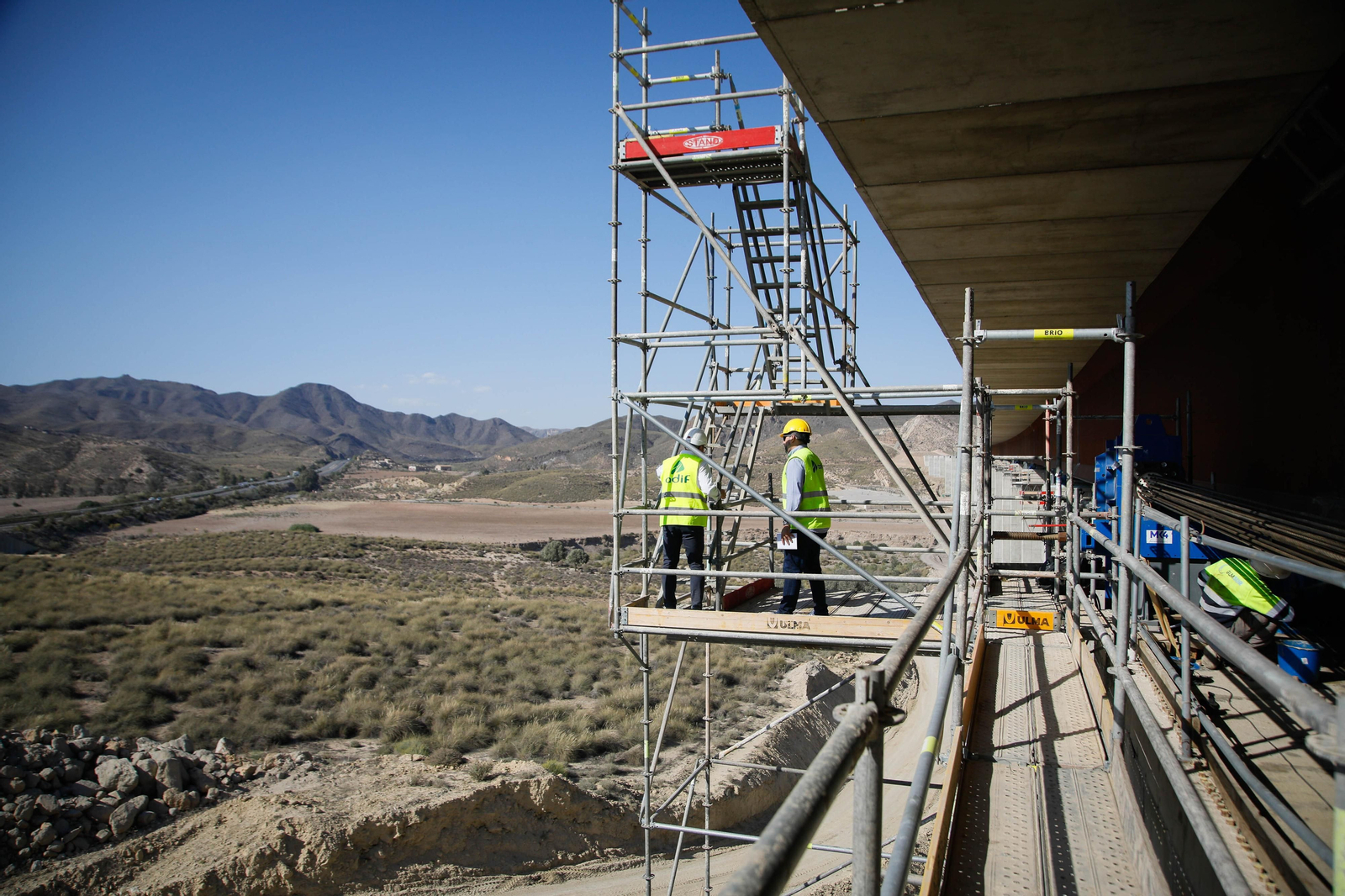 El ministro de Transportes y Movilidad Sostenible, Óscar Puente, ha visitado las obras del viaducto sobre la rambla de Los Feos, en el término municipal de Sorbas, junto al ministro de la Presidencia, Félix Bolaños, y el presidente de Adif, Pedro Marco.
