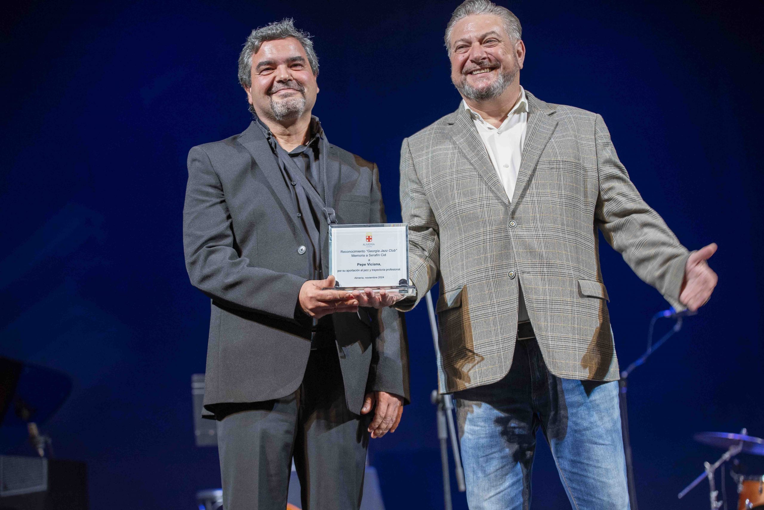 El Auditorio Municipal Maestro Padilla vivió anoche una nueva velada para el recuerdo de mano del 32º Festival Internacional de Jazz de Almería, ‘Almerijazz’. Si el viernes las tablas vibraban con el inicio de la gira conjunta de la directora norteamericana María Schneider con la Big Band Clasijazz, y el sábado se rendía a la emotividad de la música y voz del portugués Salvador Sobral, el domingo fue el turno del jazz con denominación de origen almeriense con la doble propuesta de Pepe Viciana y José Luis Jaén. El saxofonista fue distinguido al comenzar con el reconocimiento ‘Georgia Jazz Club en memoria de Serafín Cid’, sucediendo así a otros ilustres como Jorge Pardo, Paco Rivas, Antonio Gómez o Clasijazz, mientras que el vocalista hacía la primera presentación oficial de su primer trabajo discográfico.