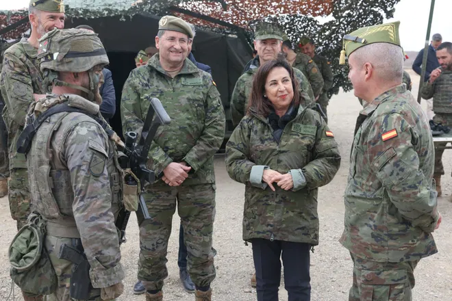 La Brigada ‘Rey Alfonso XIII’ de La Legión, compuesta por más de tres mil efectivos, ha recibido este lunes la visita de la ministra de Defensa, Margarita Robles. Acompañada por el jefe de Estado Mayor del Ejército de Tierra, el general de Ejército Amador Enseñat, la titular de Defensa ha reafirmado en la base militar de Viator el compromiso de España con Ucrania, subrayando que la lucha del pueblo ucraniano es también la de todas las naciones “que creemos en la libertad y en la paz”.