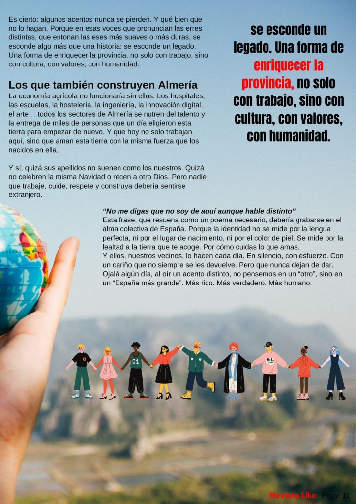 La economía agrícola no funcionaría sin ellos. Los hospitales, las escuelas, la hostelería, la ingeniería, la innovación digital, el arte… todos los sectores de Almería se nutren del talento y la entrega de miles de personas que un día eligieron esta tierra para empezar de nuevo. Y que hoy no solo trabajan aquí, sino que aman esta tierra con la misma fuerza que los nacidos en ella.