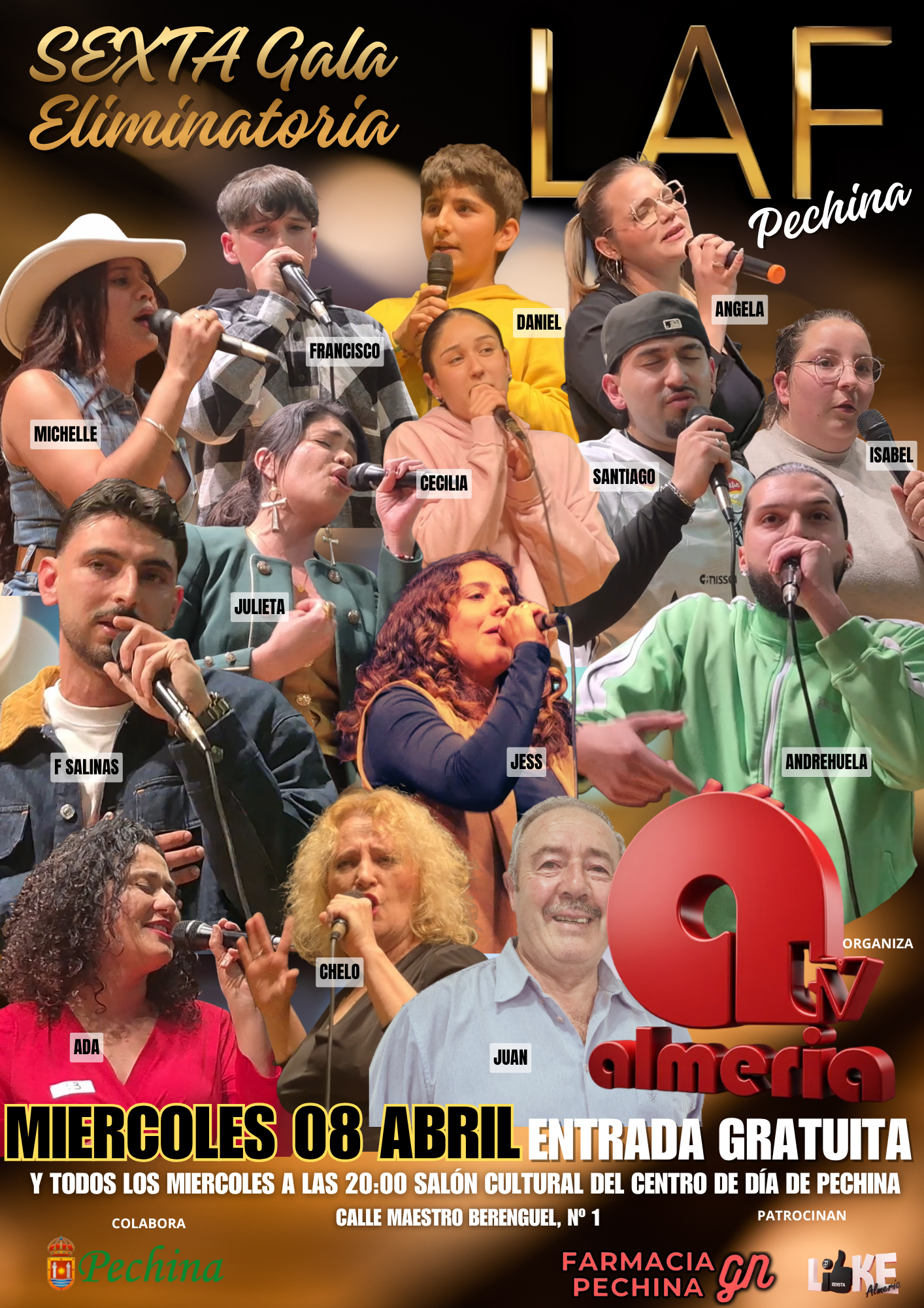 Además, esta noche a las 20:00 horas se celebrará en el centro de día de Pechina la grabación de la sexta gala de Lánzate a la Fama